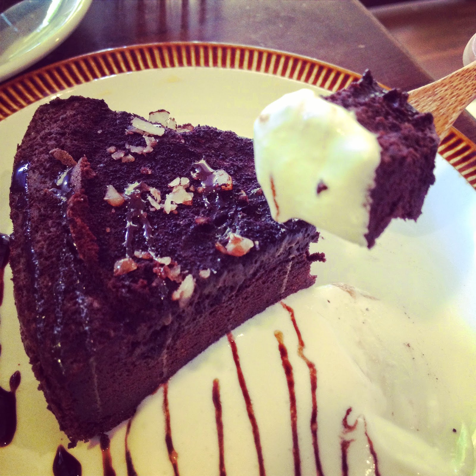 香蕉生巧克力蛋糕+卡布奇諾=220NTD。